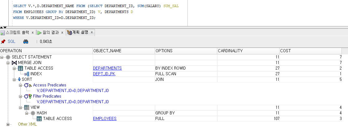 ( SELECT /*+ NO_MERGE */ d.department_id, d.department_name, -- /*+ NO_MERGE */ 는 INNER 쿼리에서!